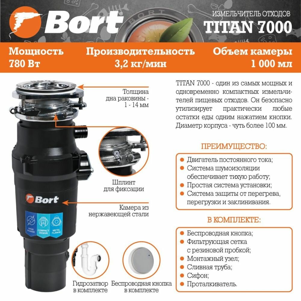 Измельчитель пищевых отходов BORT TITAN 7000 информация: