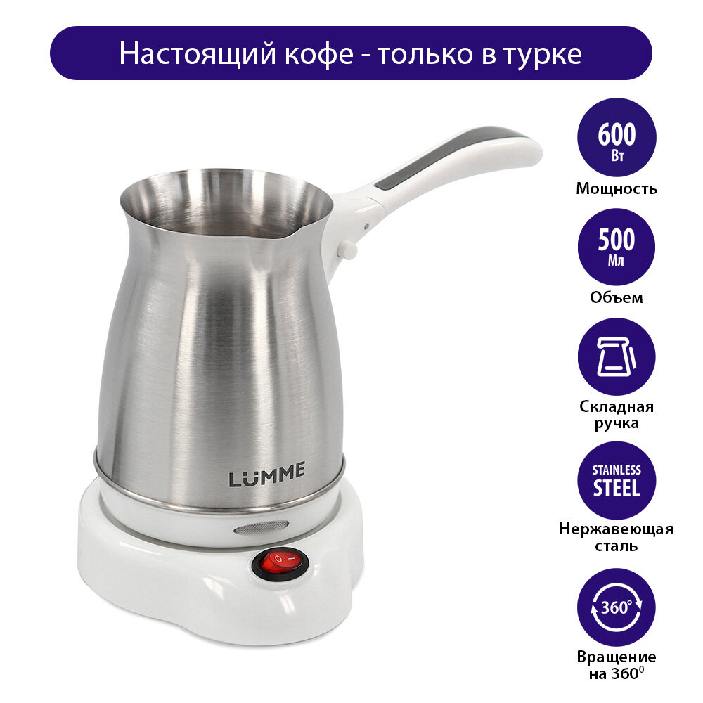 Турка для кофе электрическая Люмме LU-1631 с ручкой из термостойкого пластика и металлическим корпусом, цвет черный жемчуг, 500мл, 400Вт / техника