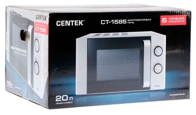 Отзывы на СВЧ Centek CT-1585 (белая) 700W, 20л, 6 режимов, диаметр тарелки 245 мм , таймер, подсветка