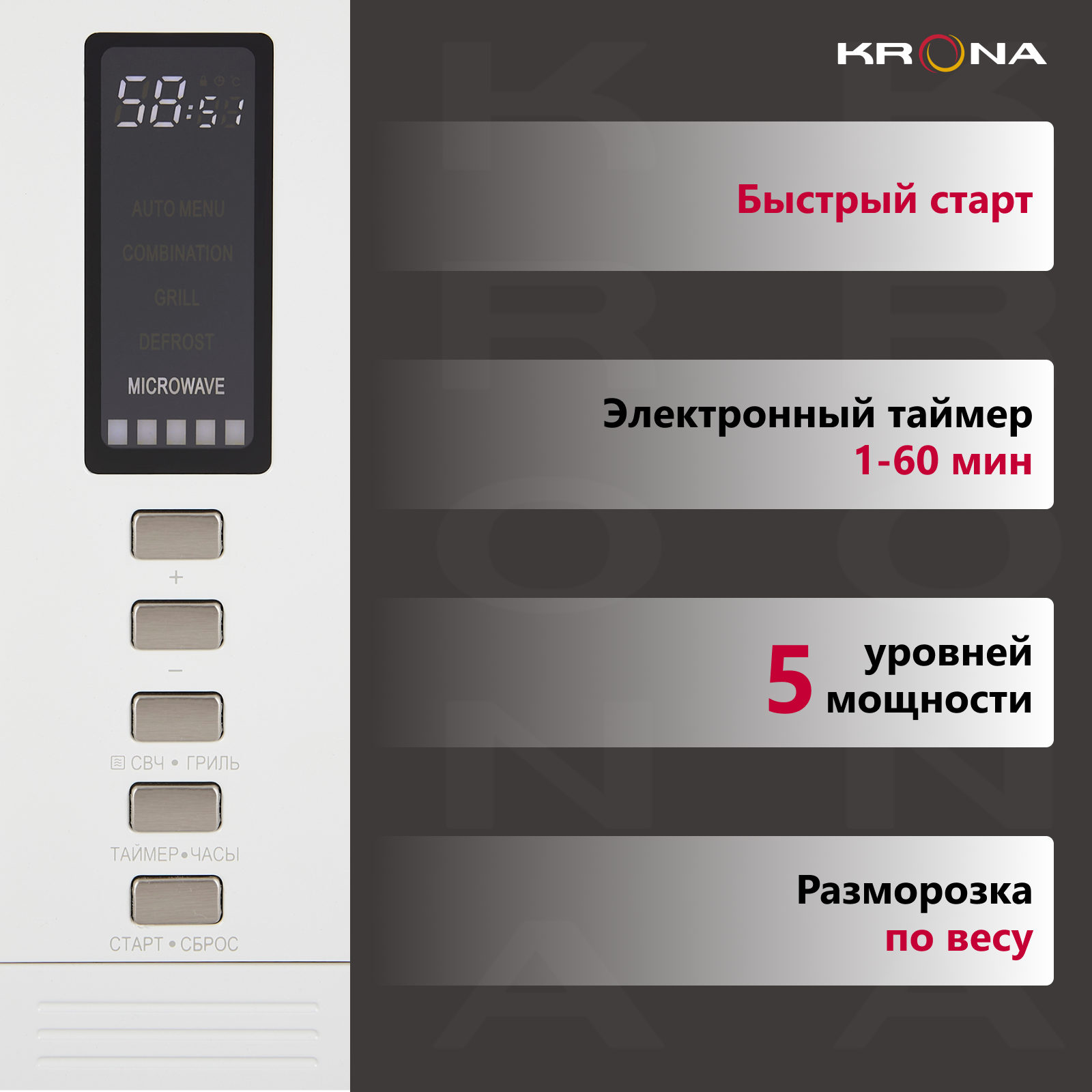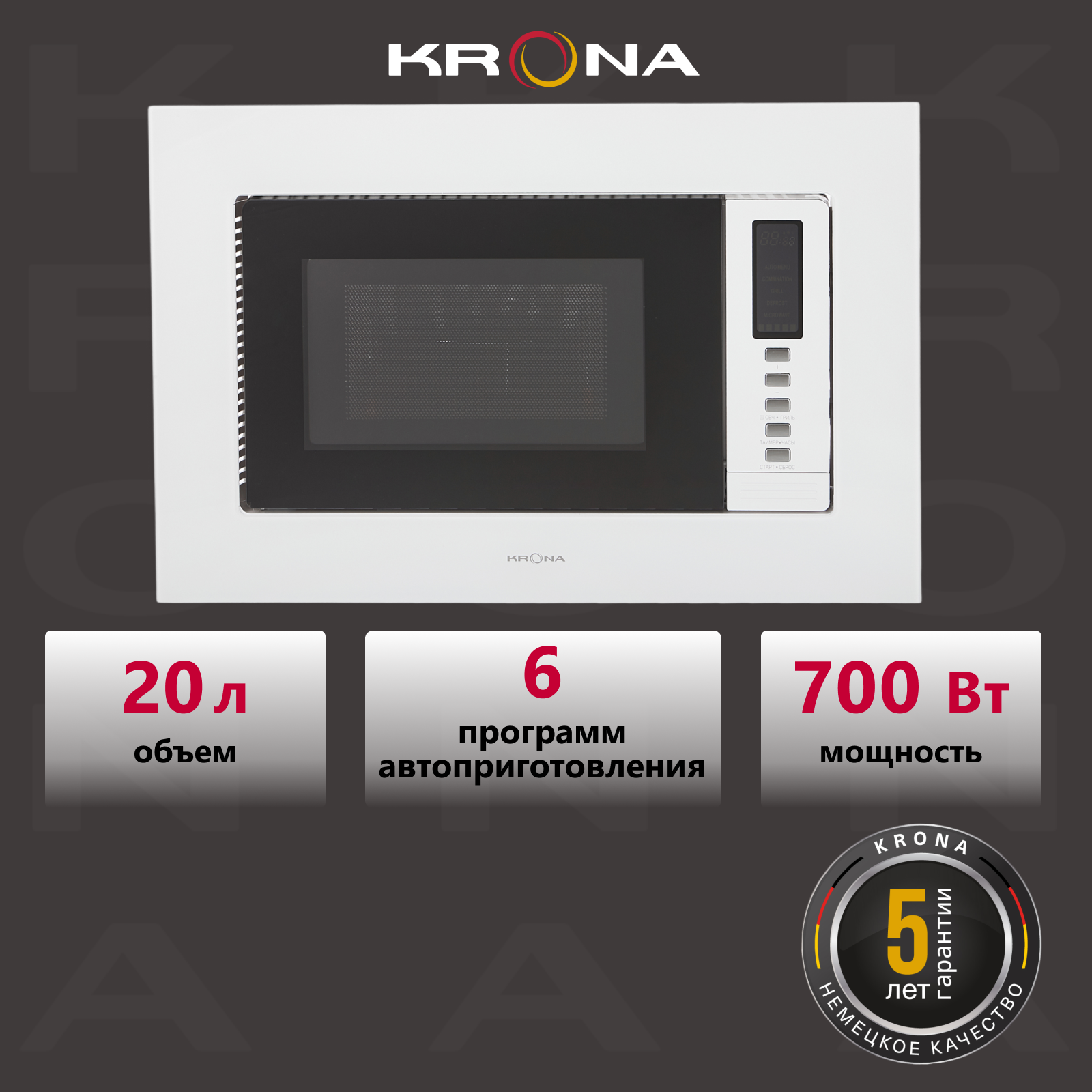 Встраиваемая микроволновая печь KRONA RAUM 60 WH информация: