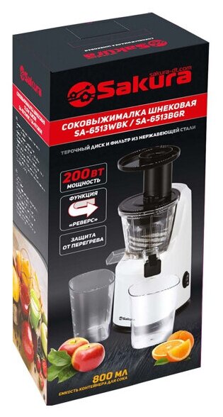 Соковыжималка шнековаяSAKURA SA-6513WBK информация: