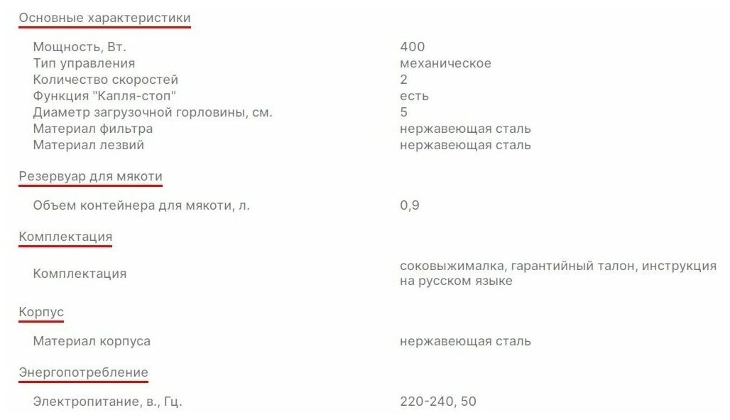 | Особенности | система прямой подачи сока / система «капля-стоп» / защита от перегрузки |