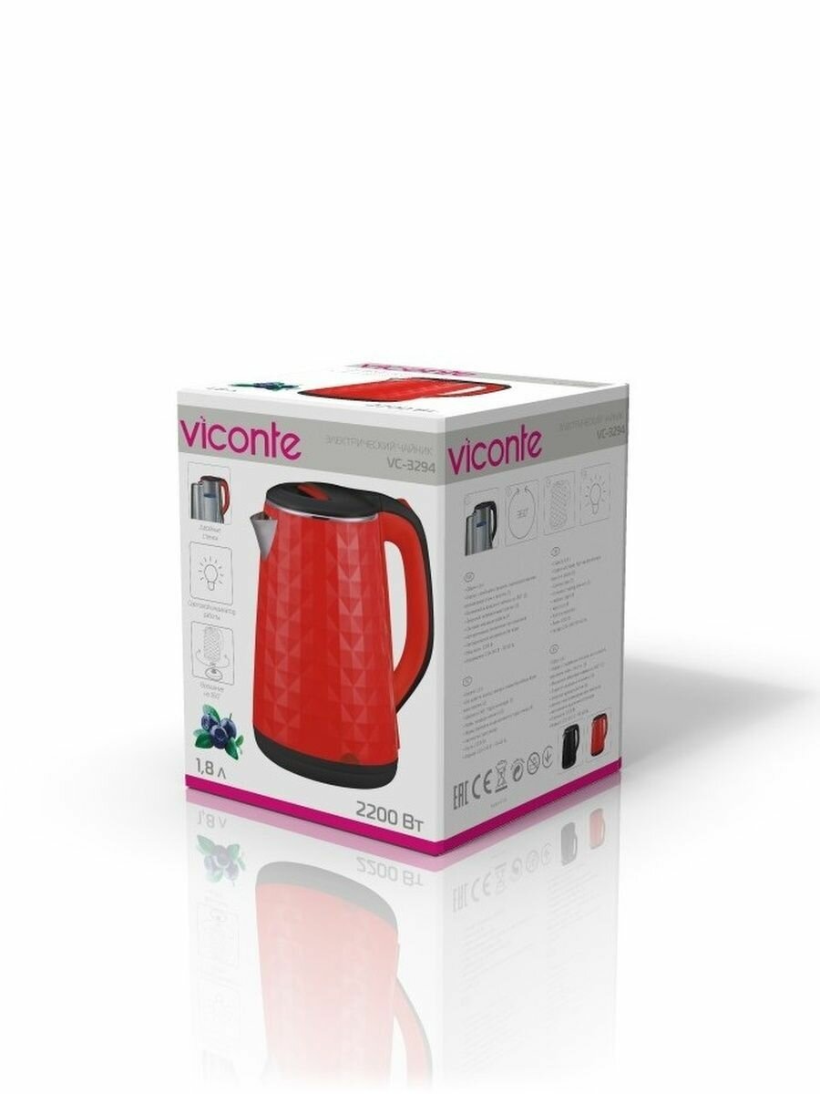 Электрический чайник Viconte VC-3294 красный 1.8 л информация: