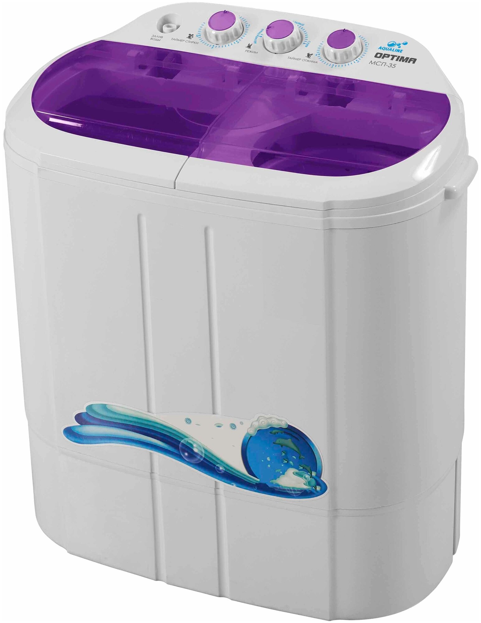 10 цен на Активаторная стиральная машина Optima МСП-35 (белая крышка с фиолетовыми окнами), белый
