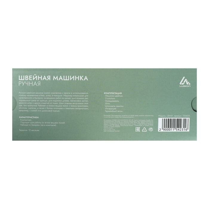 Швейная машина LuazON LSH-01, 4 Вт, портативная, 4хАА (не в комплекте), белая. В наборе 1шт. информация: