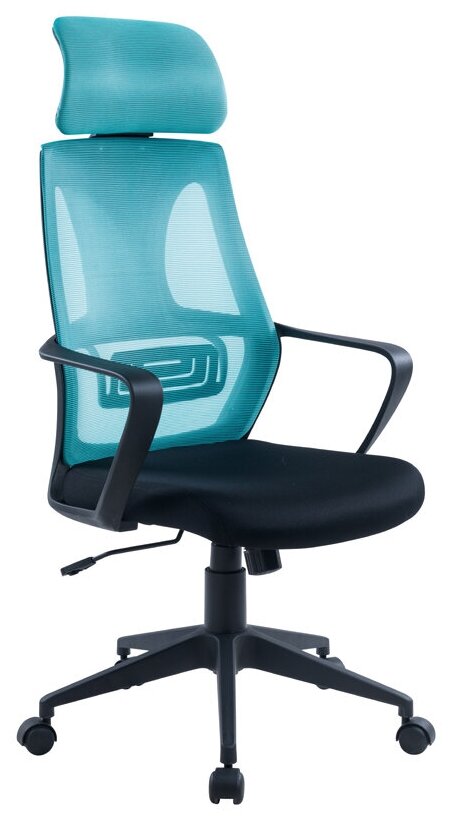 Кресло руководителя Helmi HL-E37 "Wind", ткань черная, бирюзовая 323023