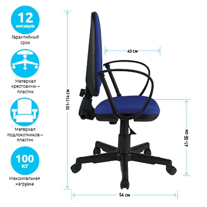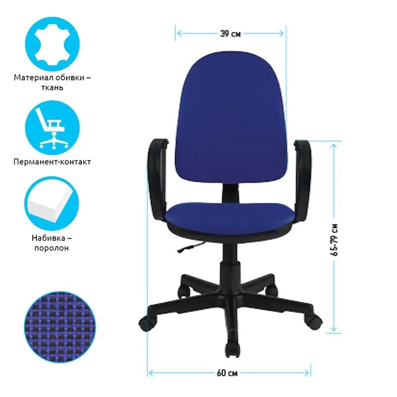 Кресло офисное Helmi HL-M30 "Престиж", ткань синяя с черным информация: