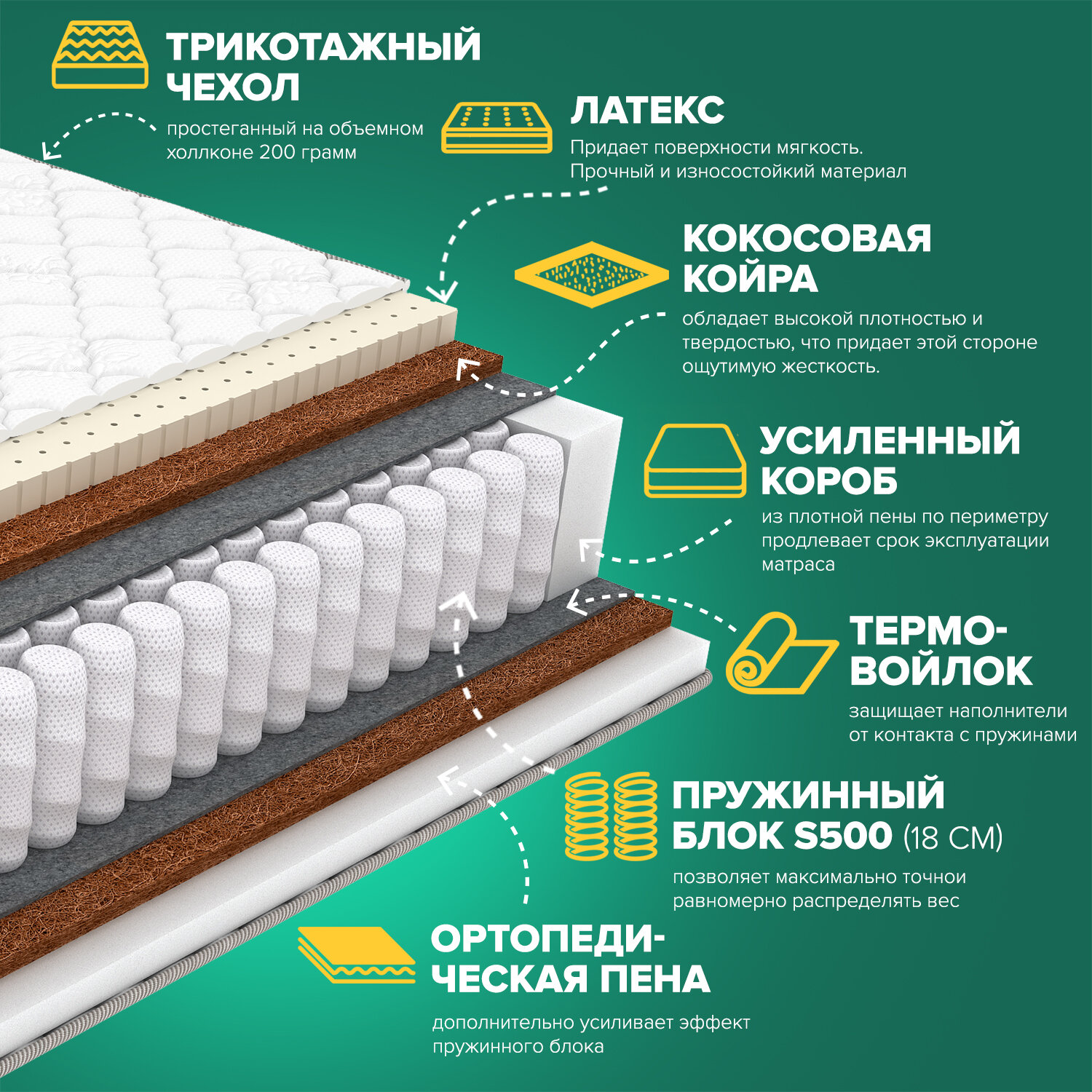 Фабрика Сна Матрас EDMOND, независимые пружины, кокос, средняя жесткость, анатомический, 90х200 см