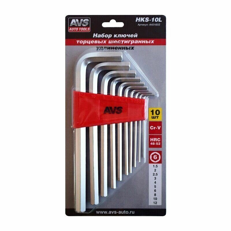 Отзывы на Набор ключей торцевых шестигранных удлиненных 10 предметов (1,5-12мм) AVS HKS-10L