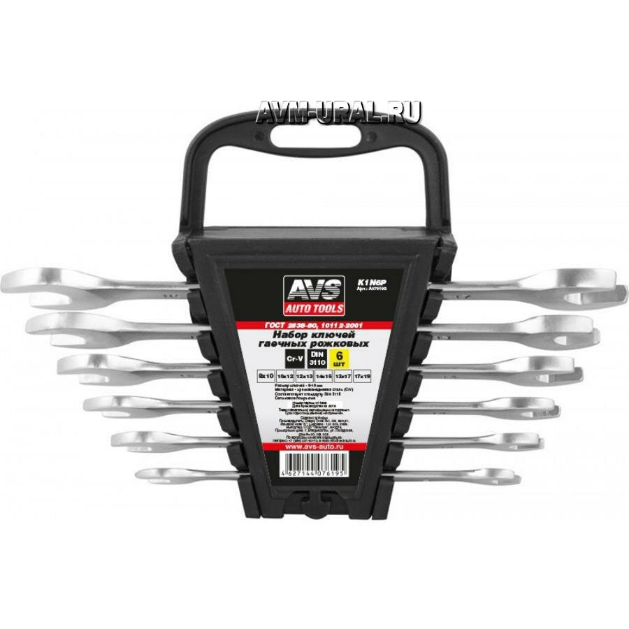A07619S Набор ключей гаечных рожковых на держателе (8-19 мм) (6 предметов) AVS K1N6P
