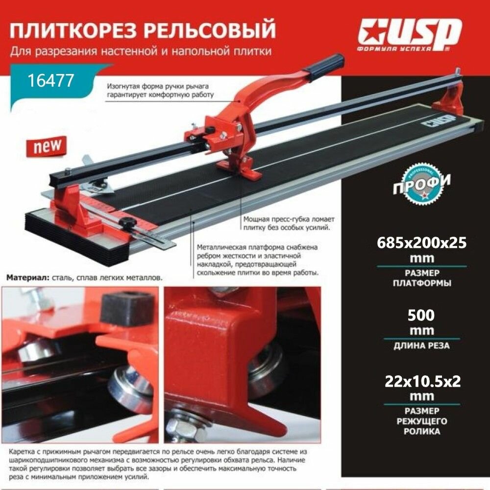 Плиткорез Успех 500 мм рельсовый с циркулем информация: