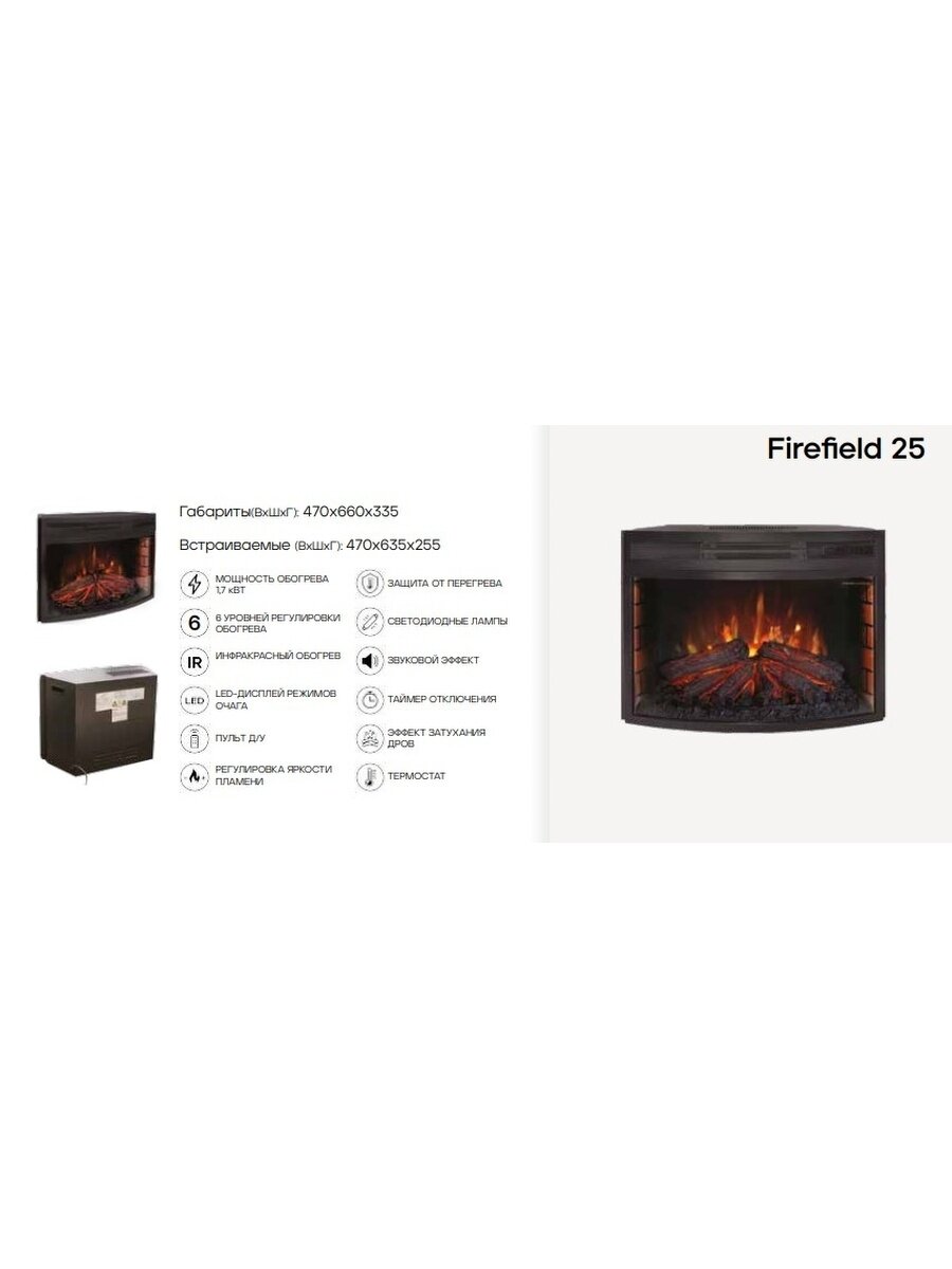 Электрокамин Real Flame Rockland 25/25,5 AO-217 с очагом Firefield 25 S IR информация: