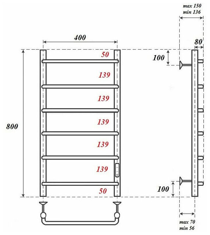 Полотенцесушитель электрический Point Pn08848b П6 400x800 диммер справа черный . информация: