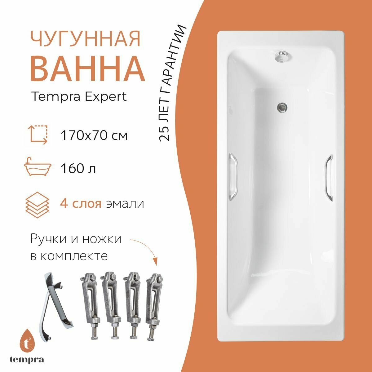 Ванна чугунная tempra Expert 170x70 квадратные ручки информация: