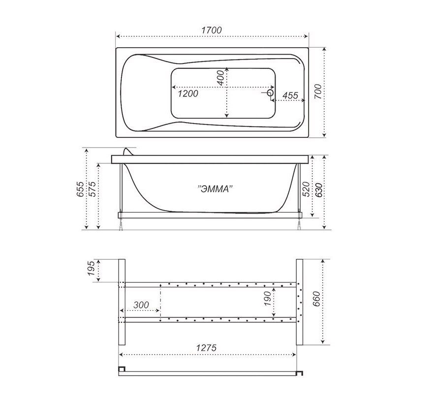 Ванна Эмма 170 NEW+Экран Эмма 170 информация: