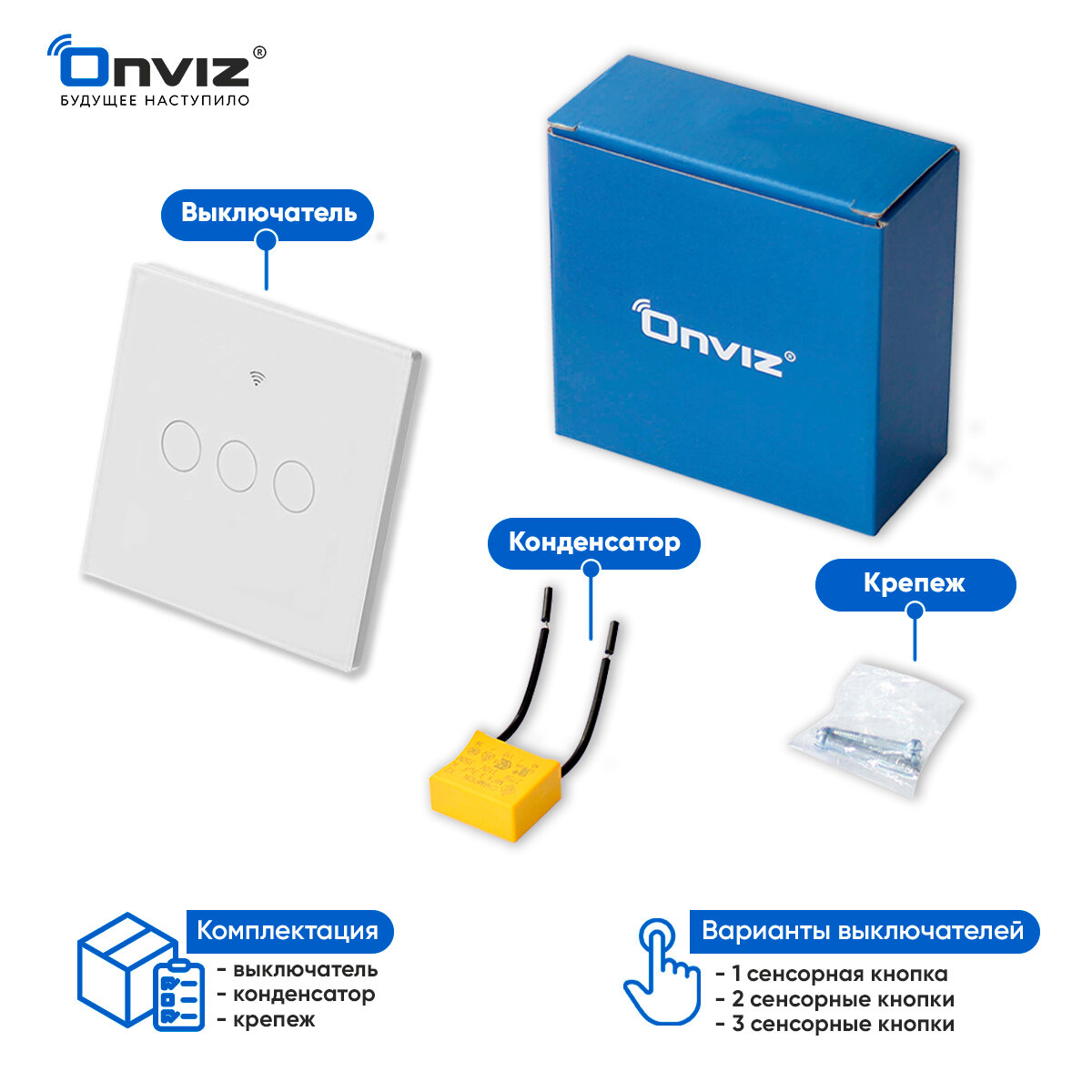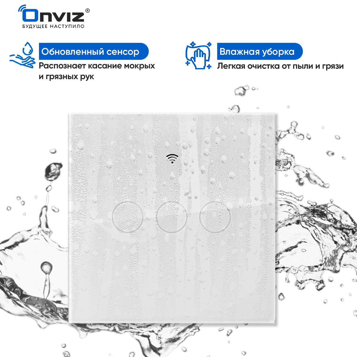 Умный выключатель Tuya с Алисой Wi-Fi тройной сенсорный без нуля (нейтрального провода) белый стеклянный информация: