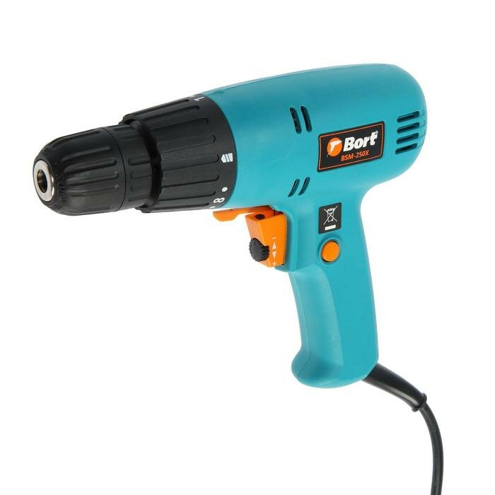 Дрель-шуруповерт Bort BSM-250X, 280 Вт, 800 об/мин, регулировка крутящего момента, 10.5 Нм информация: