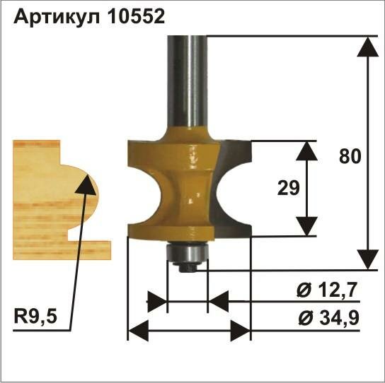Фреза кромочная полустержневая ф34,9 мм R9,5 мм хвостовик 12 мм Энкор 10552 информация: