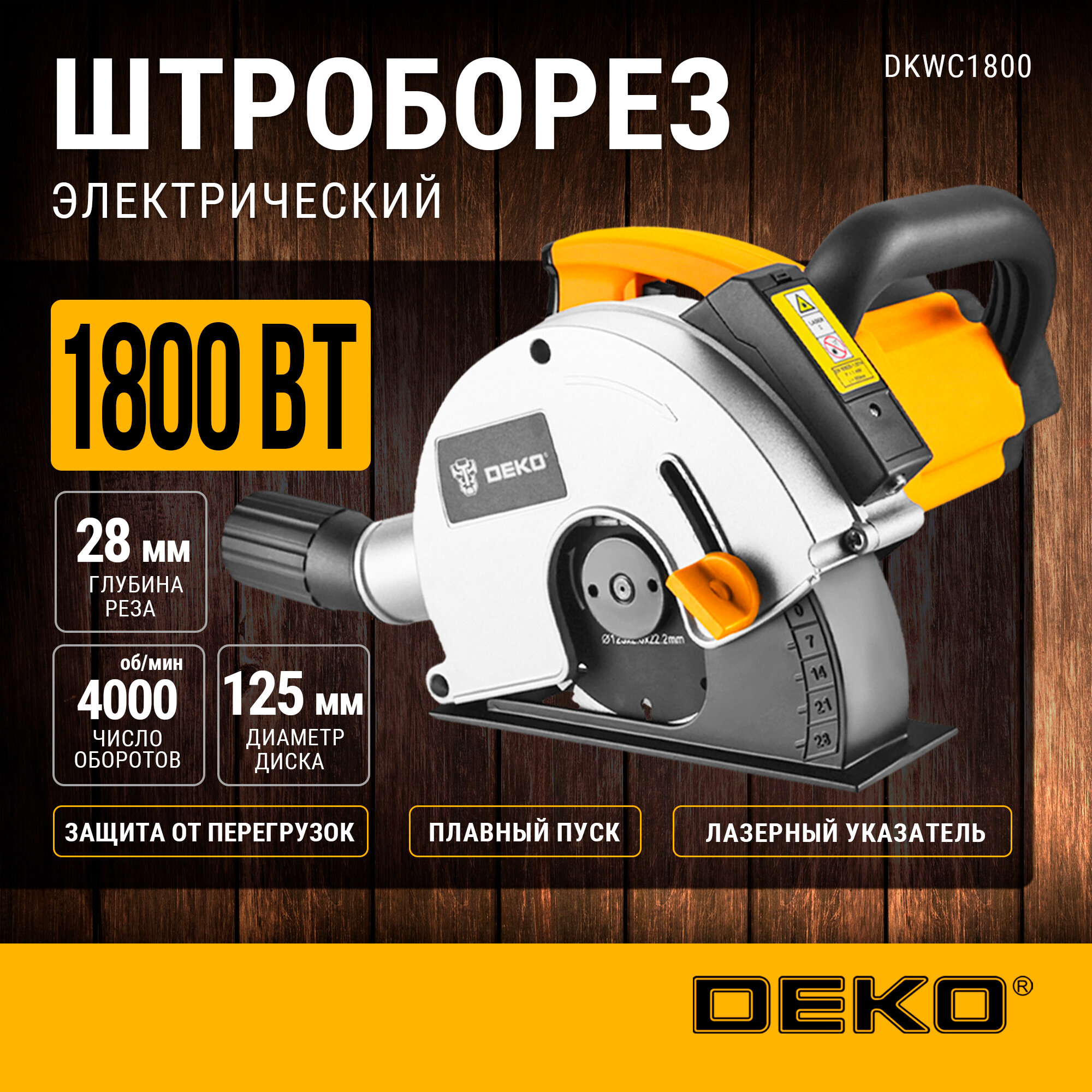 Штроборез DEKO DKWC1800, 125 мм, 1800 Вт, лазерный указатель информация: