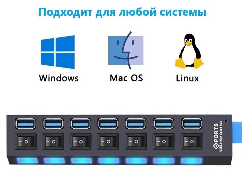 USB Hub разветвитель на 7 USB с выключателями (Черный) информация: