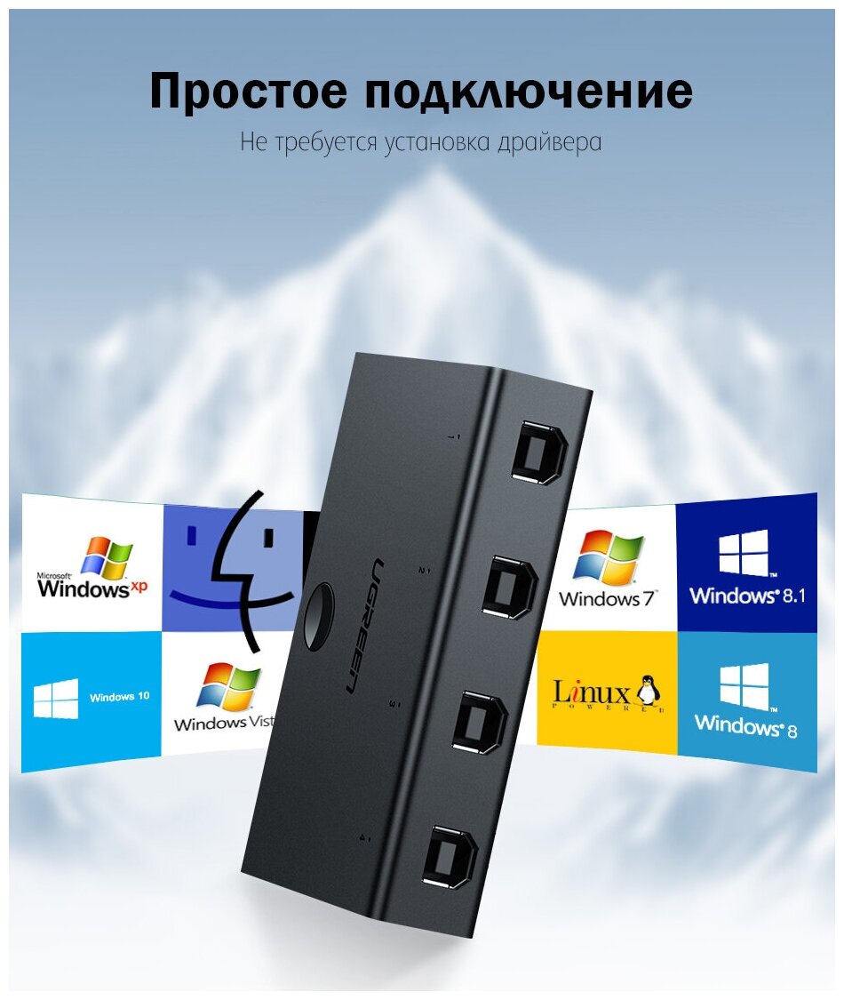 Сплиттер UGREEN US158 (30346) USB 2.0 Sharing S Witch 4x1. Цвет: черный информация: