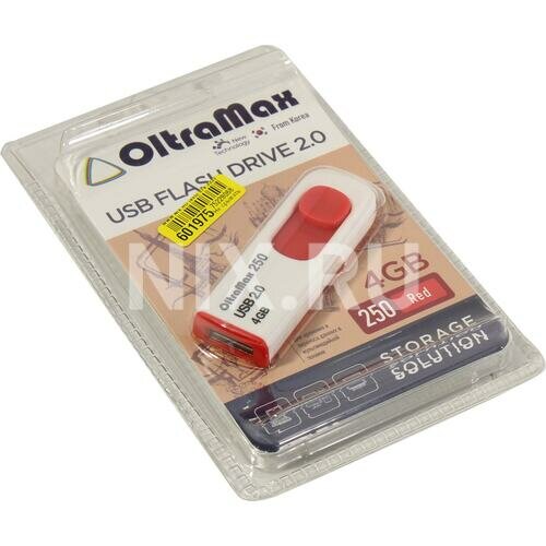 Флешка OltraMax 250, 4 Гб, USB2.0, чт до 15 Мб/с, зап до 8 Мб/с, красная информация: