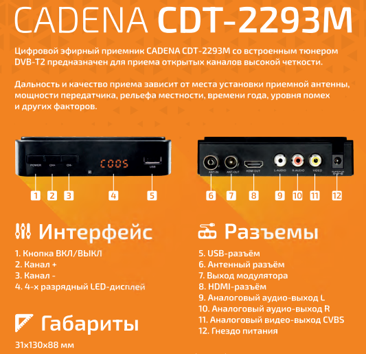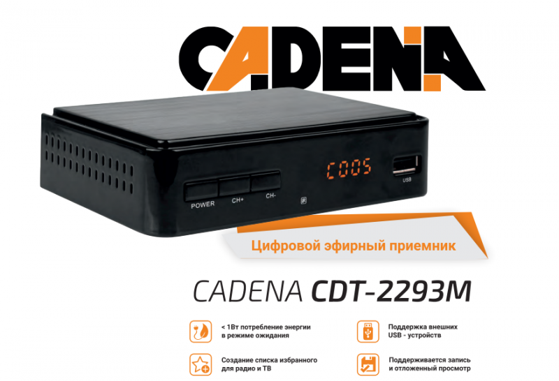 Ресивер Cadena DVB-T2 CDT-2293М информация: