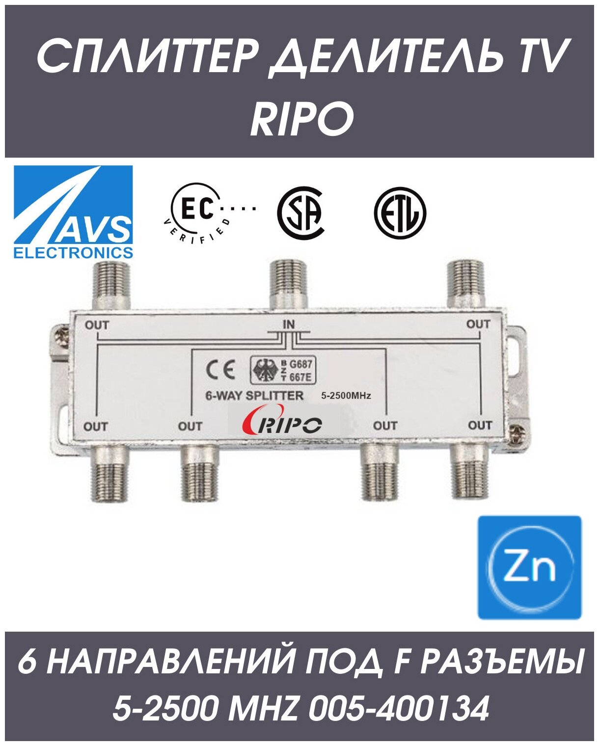 Сплиттер Ripo на 6 направления под F-разъемы 5-2500MHz 005-400134 . информация: