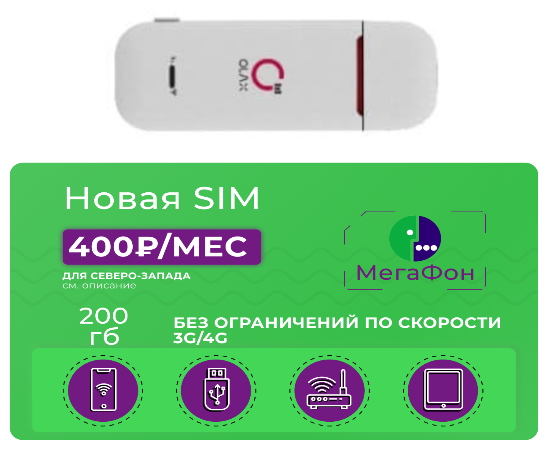 USB модем OLAX U90H-E WiFi с сим-картой Мегафон 200 ГБ за 400 руб/мес информация: