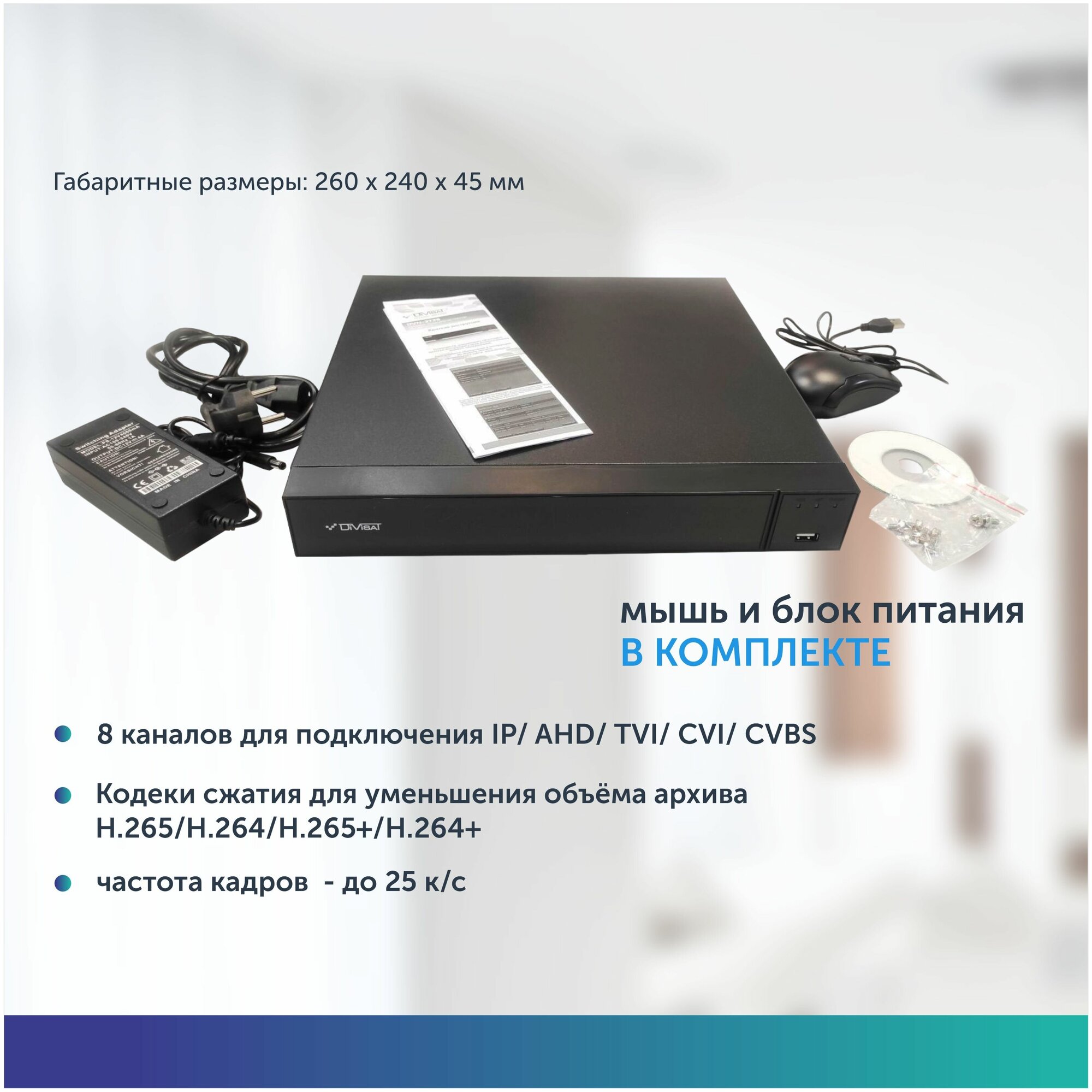 Видеорегистратор гибридный 8 каналов AHD 8 Mpix + IP 8 Mpix информация: