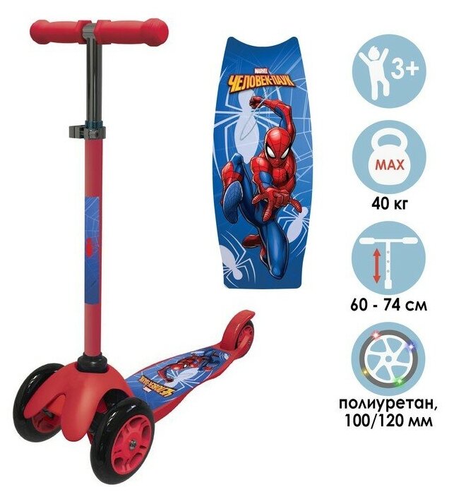 Отзывы на MARVEL Самокат детский складной "Человек-Паук", колеса PU 120/80 мм, ABEC 7, цвет красный