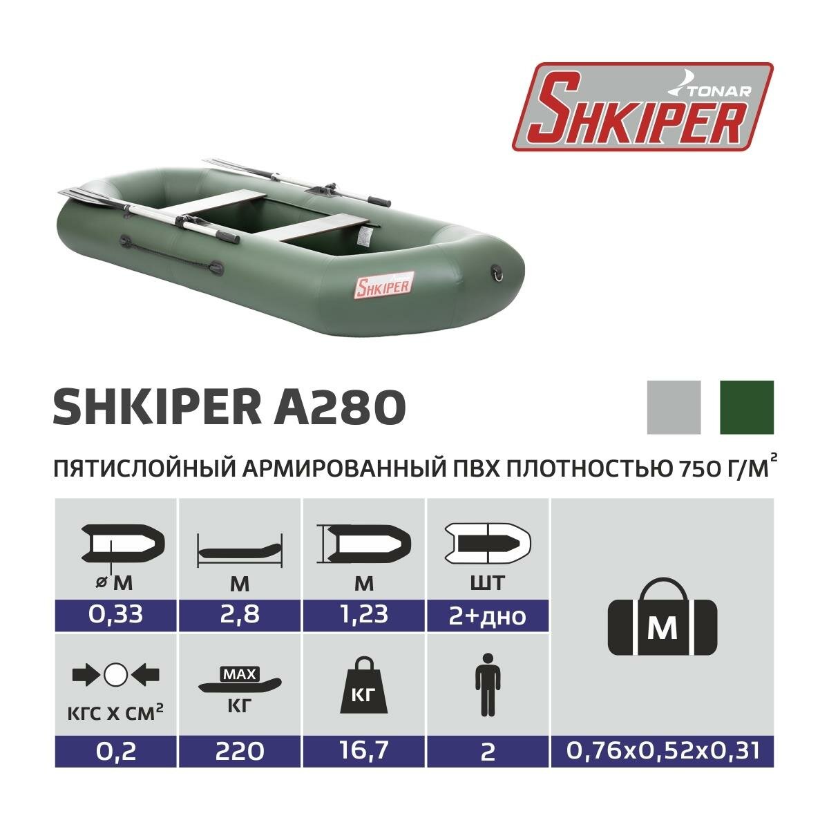 Лодка Шкипер А280 надувное дно зеленый Тонар информация: