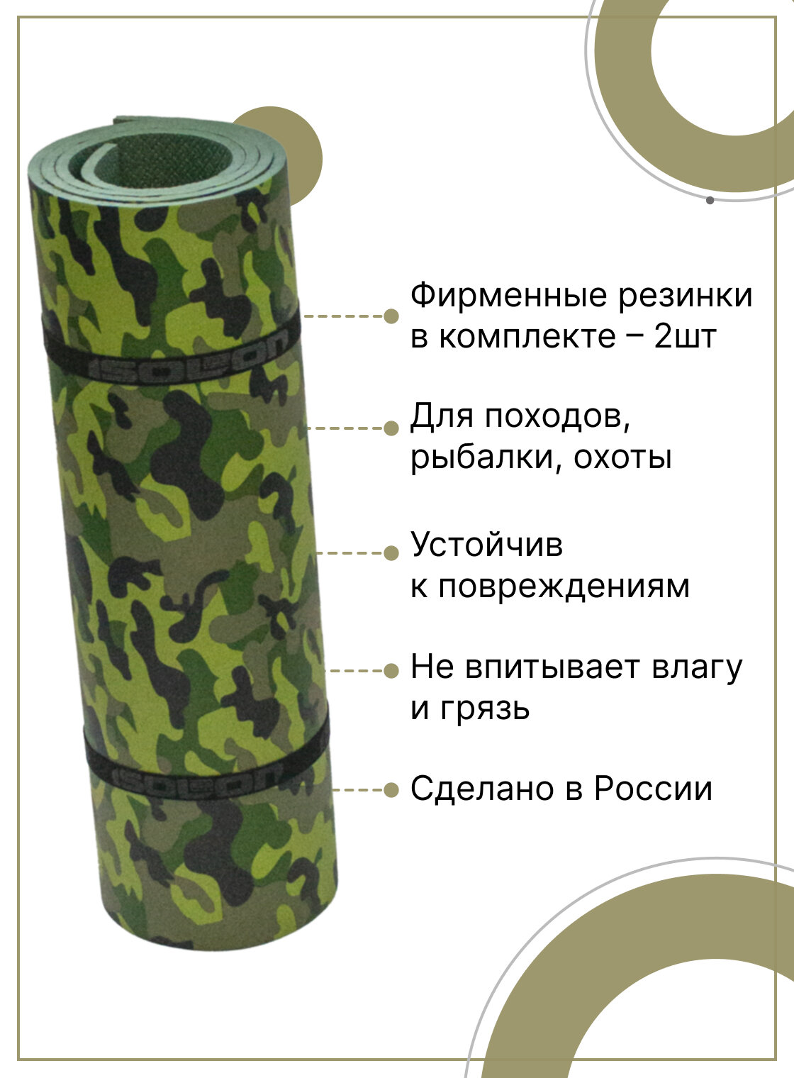 Коврик для туризма и отдыха Isolon Decor Камуфляж 8 мм, 180х55 см хаки 602 ₽