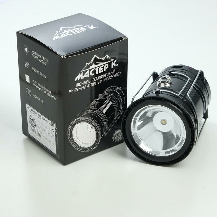 Отзывы на Мастер К Фонарь кемпинговый аккумуляторный "Мастер К.", солнечная батарея, 1800 мАч, 7 LED, черный