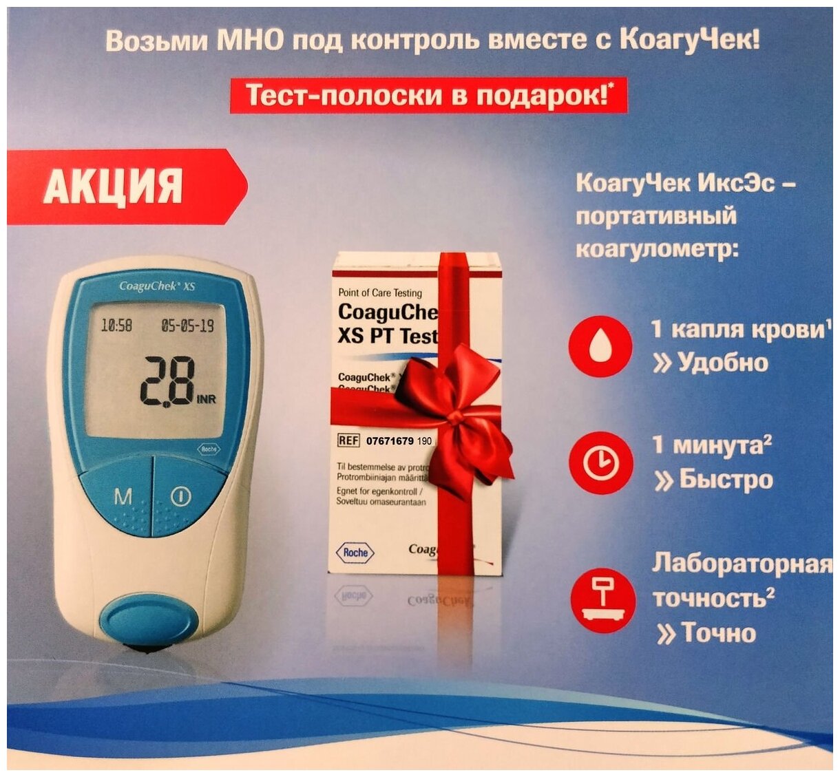 Отзывы на Коагулометр Коагучек (CoaguChek XS) + тест полоски CoaguChek XS 24 шт.