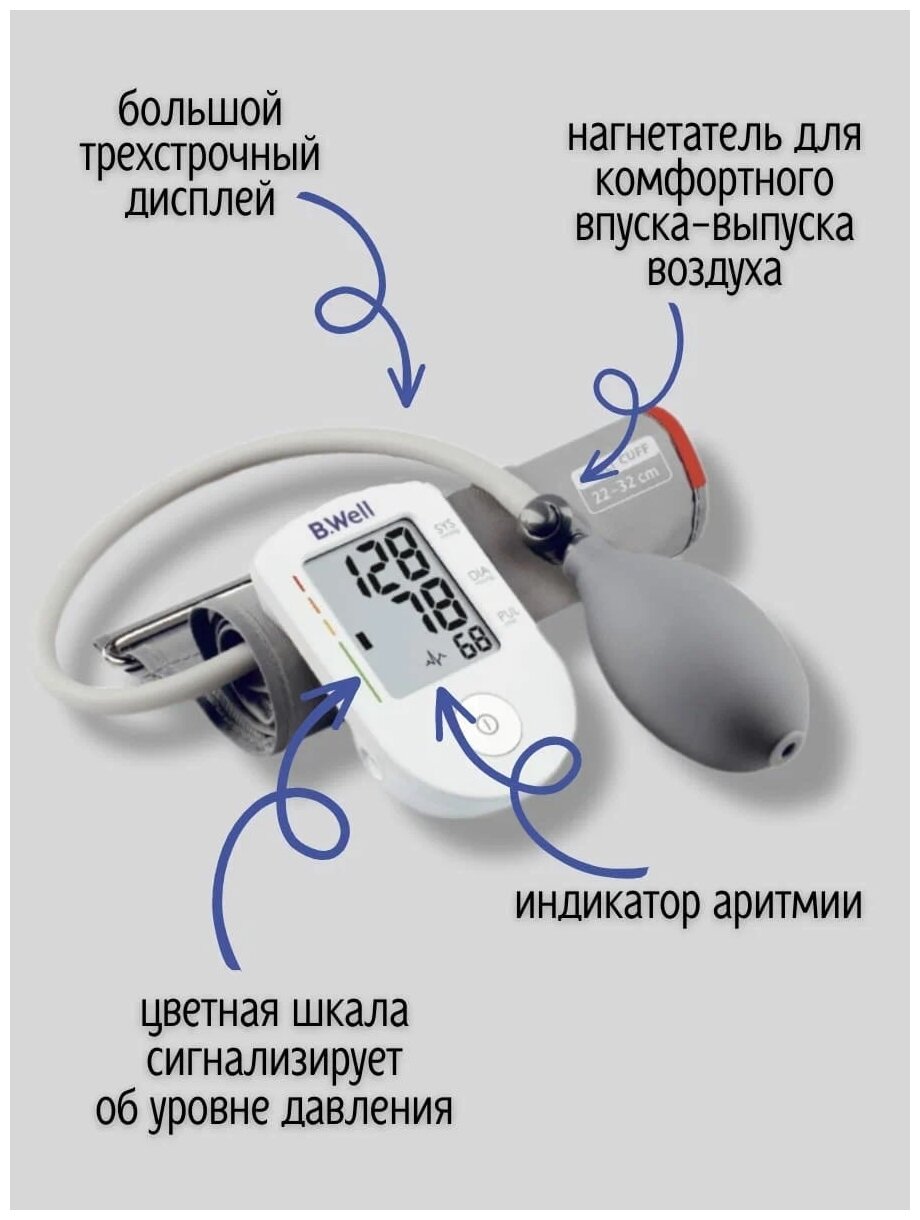 Тонометр B.Well PRO-30 (M) манжета (22-32 см), индикатор аритмии, шкала давления