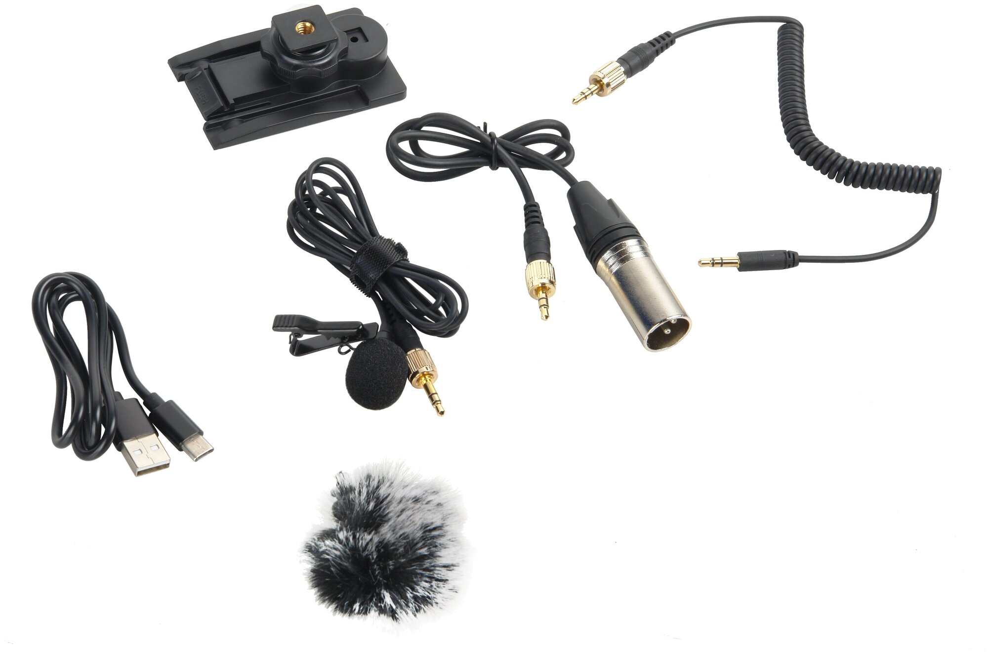 | Подробная комплектация | Приемное устройство-ресивер – 1 шт; Микрофонный усилитель-трансмиттер – 1 шт ;Петличный микрофон с кабелем и креплением – 1 шт; Кабель аудиовыхода 3.5мм/3,5мм – 1 шт; Кабель аудиовыхода 3,5мм / XLR – 1 шт; Кабель внешнего питания/зарядки USB Type C – 1 шт ;Крепление поясное – 2 шт; Крепление «холодный башмак» – 1 шт; Ветрозащита микрофона – 1 шт; Кейс для хранения – 1 шт; Руководство по эксплуатации; Гарантийный талон |