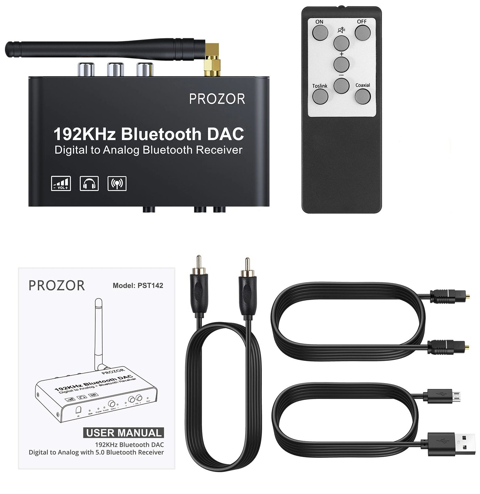 | Комплектация | Prozor (Neoteck) PST173c, кабель Toslink 1.5м, коаксиальный кабель 1м, кабель USB – microUSB, инструкция |