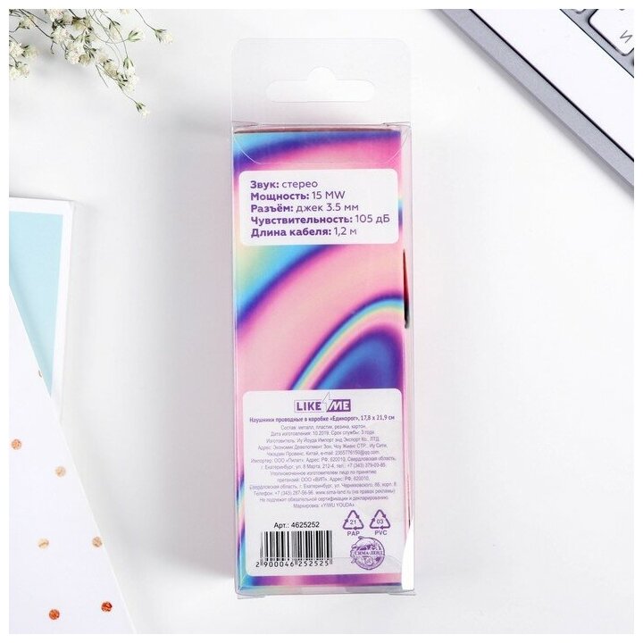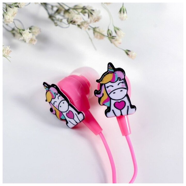Наушники проводные в коробке, «Единорог», вакуумные, розовые информация: