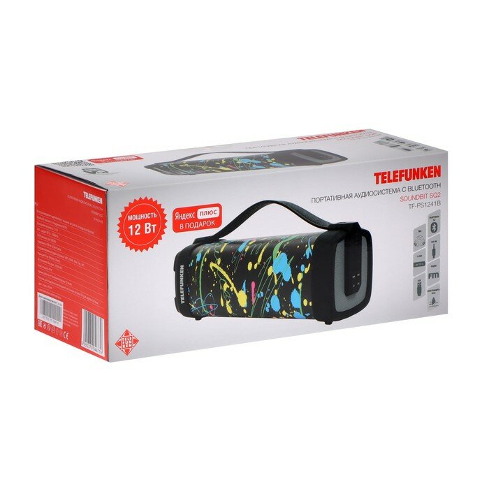 TELEFUNKEN Портативная колонка Telefunken TF-PS1241B, 12Вт, 1500мАч, FM, BT, microSD, IPХ4,AUX, принт 1 информация: