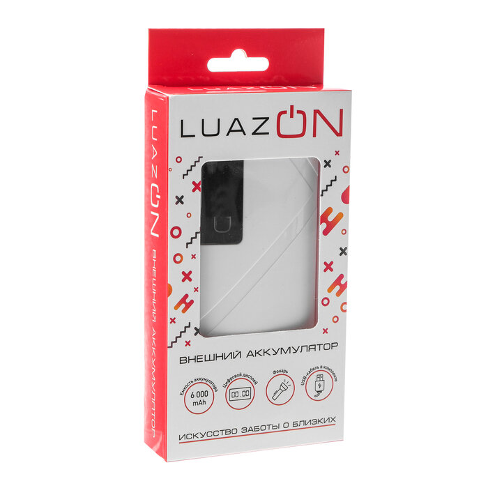 Отзывы на Luazon Home Внешний аккумулятор LuazON PB-05, 6000 мАч, 3 USB, 2 А, дисплей, фонарик, белый