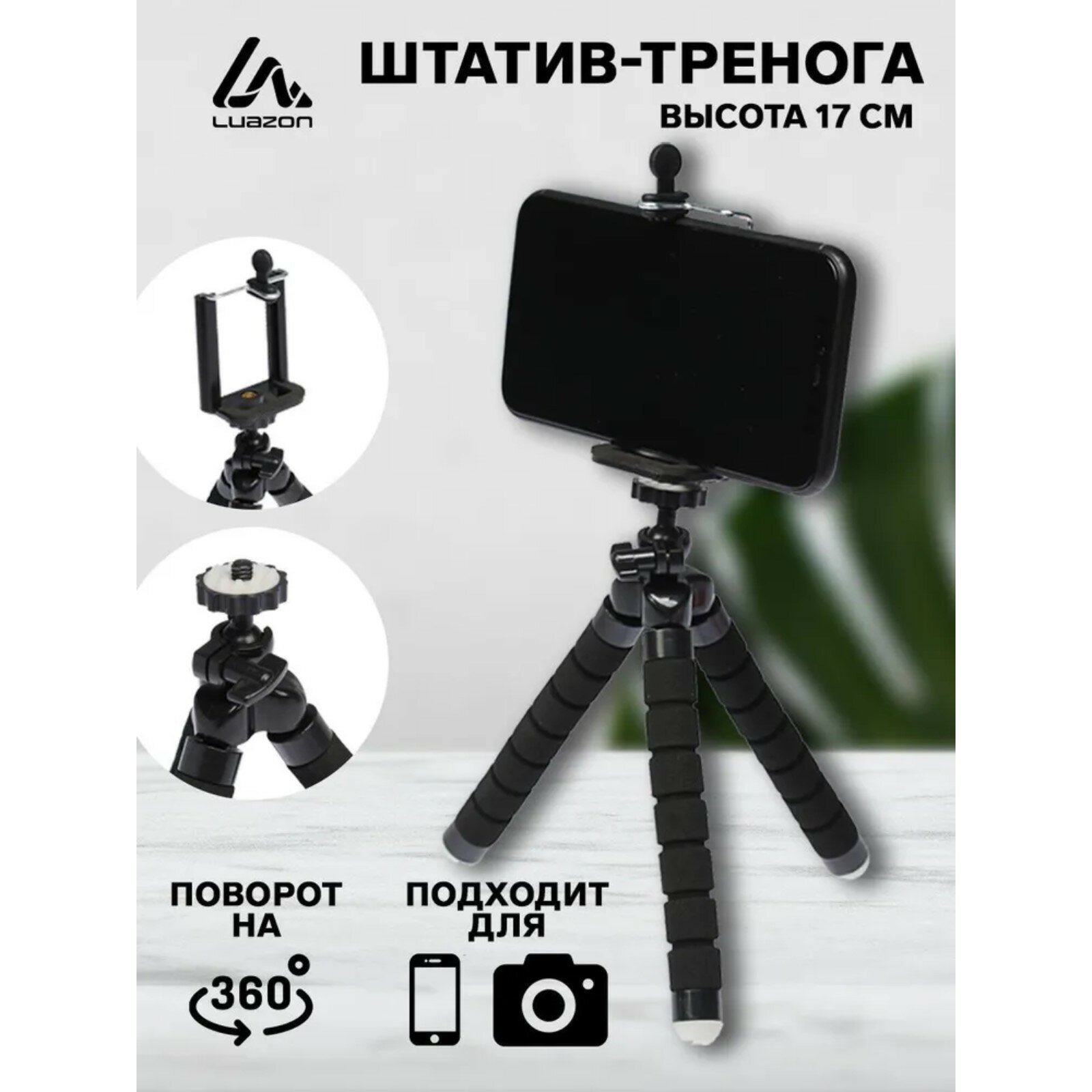 Отзывы на Штатив-тренога LuazON настольный, для телефона, гибкие ножки, высота 17 см, чёрный