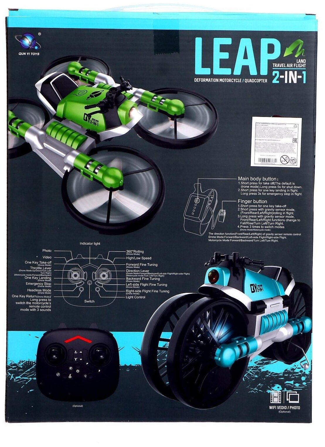 Отзывы на Квадрокоптер радиоуправляемый «Трансформер», управление жестами, цвет зелёный