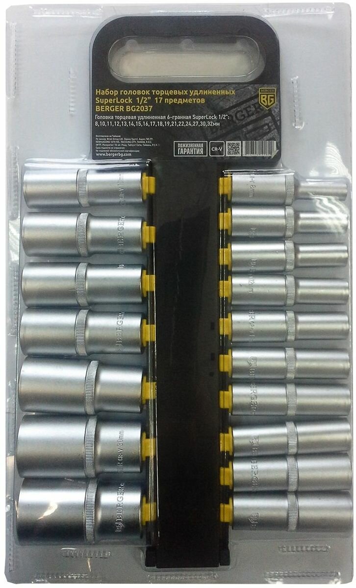 Berger BG Набор головок торцевых удлиненных 1/2 SuperLock 17 предметов Berger BG2037 . информация:
