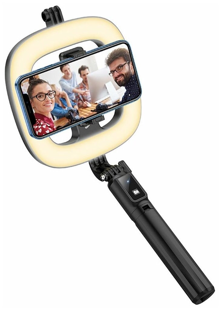 Монопод-держатель, селфи лампа HOCO LV03 Plus черный