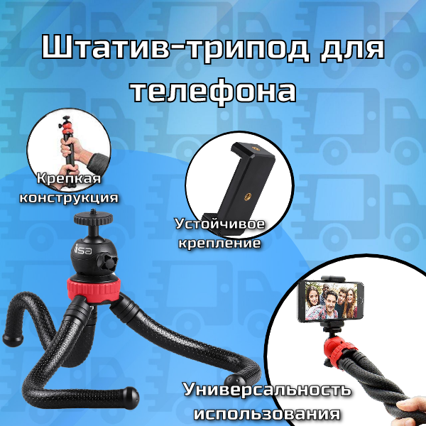 Штатив для телефона и камеры с гибкими ножками Прочный надежный Селфи Трипод / Тренога для камеры и телефона информация: