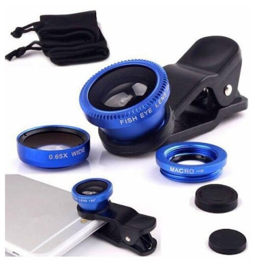 10 цен на Фишай / Фишай прищепка / Линза на телефон / Объектив на смартфон / Синий