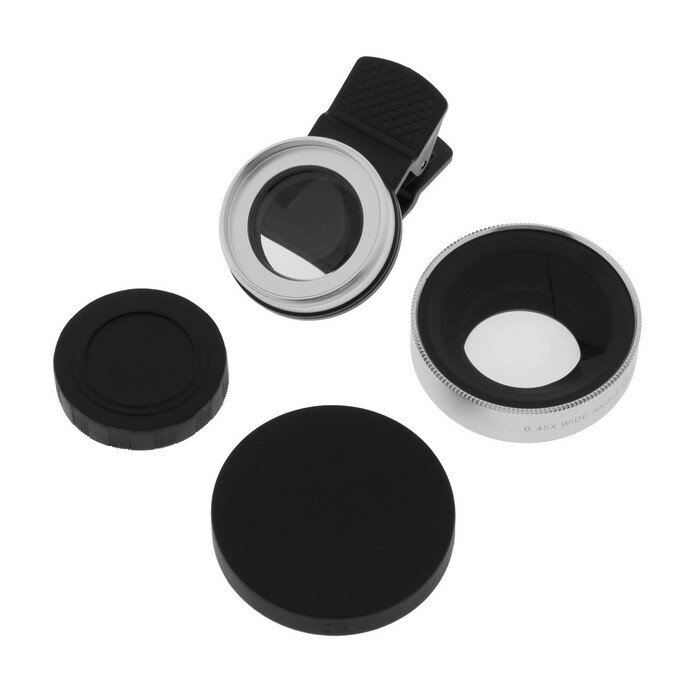 Широкоугольный макрообъектив-линза для телефона 2 в 1, 0.45Х, 37 мм, серебристый. В наборе 1шт. информация:
