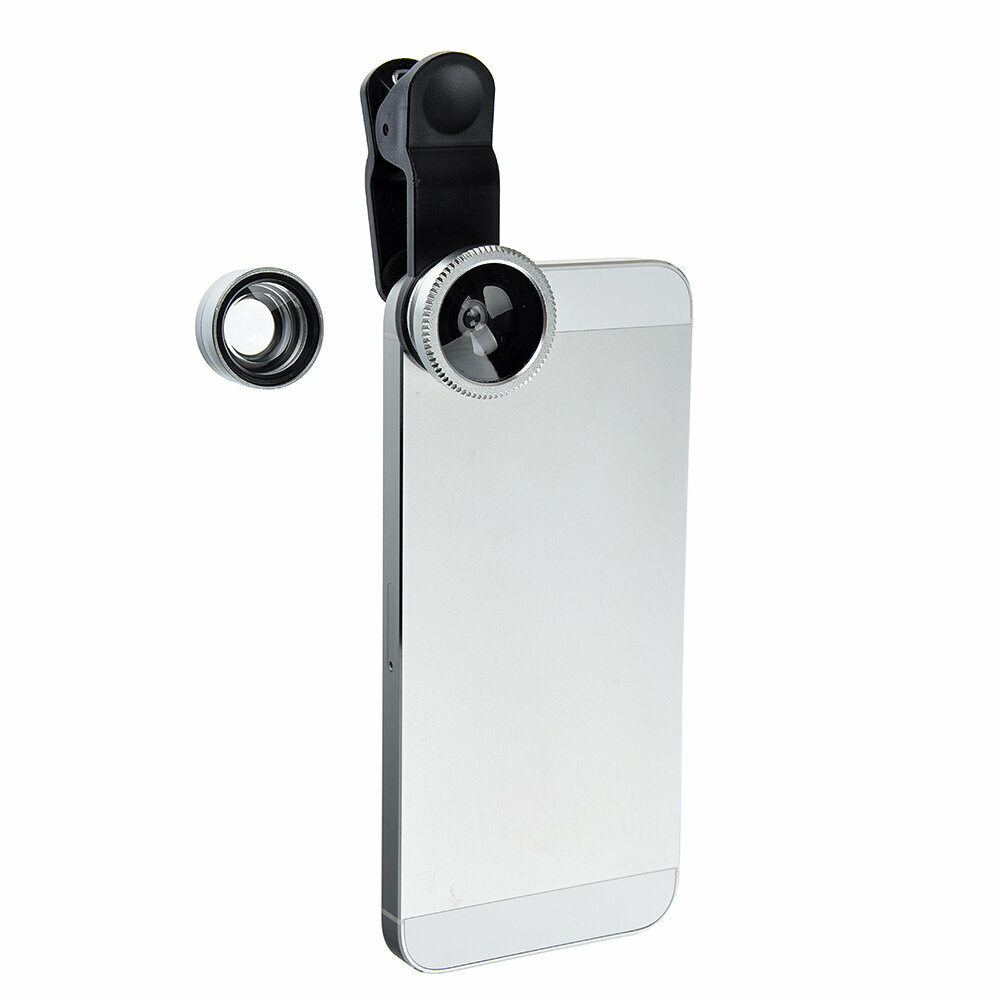 Широкоугольный макрообъектив-линза для телефона 2 в 1, 0.45Х, 37 мм, серебристый