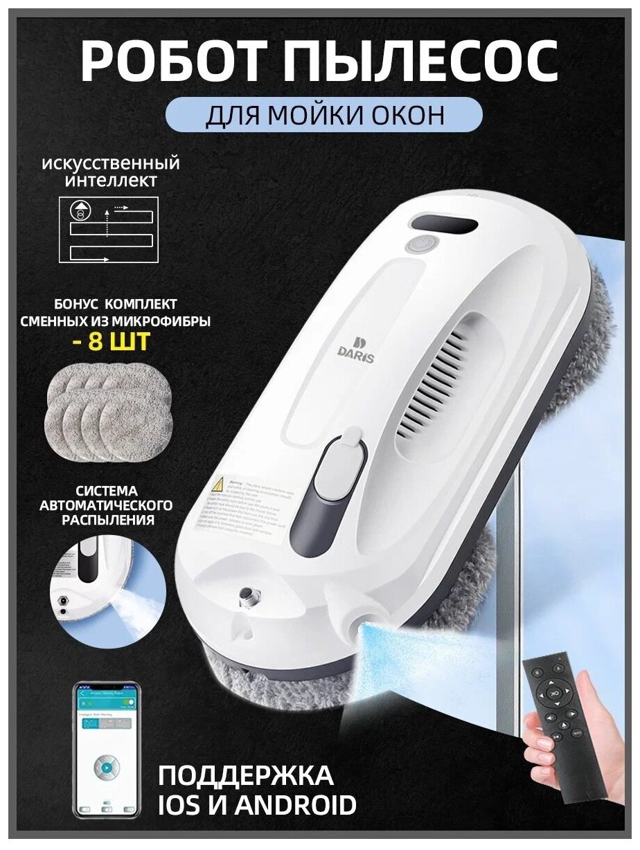 Робот мойщик окон и зеркал lastimi Daris с распылителем и мобильным приложением белый информация: